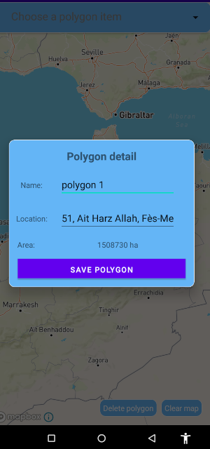 - Save the polygon on a local room database (store name, address, and area of polygon)